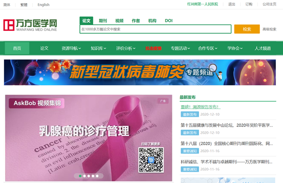 1. 扫描关注万方医学网公众号:(无 app)