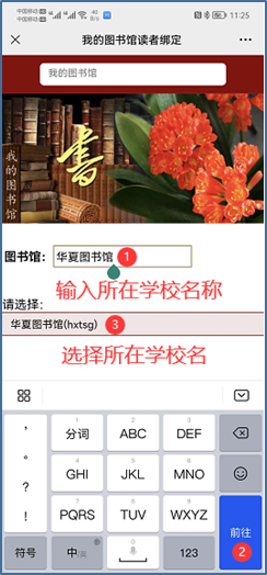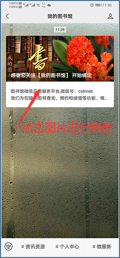 2、点击公众号界面图片进行绑定,输入您所在单位的名称 gysfybjy→ 输入借阅证卡号和密码(均为个人身份证后10位)