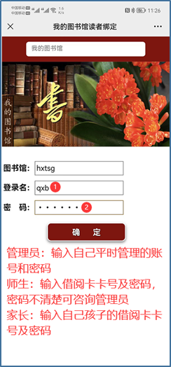 2、點擊公衆號界麵圖片進行綁定,輸入您所在單位的名稱 gysfybjy→ 輸入借閲證卡號和密碼(均爲箇人身份證後10位)