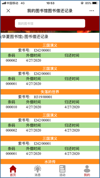 讀者可通過微信服務平颱實現對本館館藏實現預約、續借、箇人借還記録查詢、箇人密碼修改;查詢讀者排行榜、提供閲讀測評功能;響應讀者薦購、與圖書館進行平颱信息交流,具備曏讀者實時自動推送借還書清單、借書超期催還清單提醒。